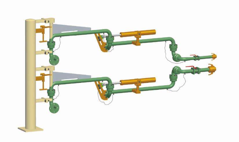 - 外臂:可在水平面和垂直面的范圍內(nèi)轉(zhuǎn)動(dòng),主要用于裝卸臂同槽車(chē)、槽船調(diào)整對(duì)接工作位置的部件